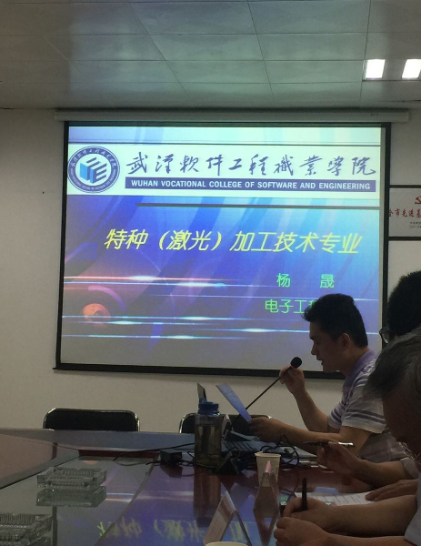 会上首先由湖北省激光学会秘书长,武汉?中国光谷激光行业协会秘书长刘善琨、武汉软件工程职业学院电子工程学院副院长何琼讲话,然后由电子工程学院激光教研室杨晟主任作了关于《武软工院特种(激光)专业对接行业需求发展现状介绍》、《武软工院特种(激光)专业实训基地建设》、《武软工院特种(激光)专业教学资源库建设》、《武软工院特种(激光)专业激光加工技术协同创新中心社会服务功能》等报告,最后入会的领导和专家进行了热情洋溢的讨论,提出了许多有建设性的建议,达到了预期的效果。